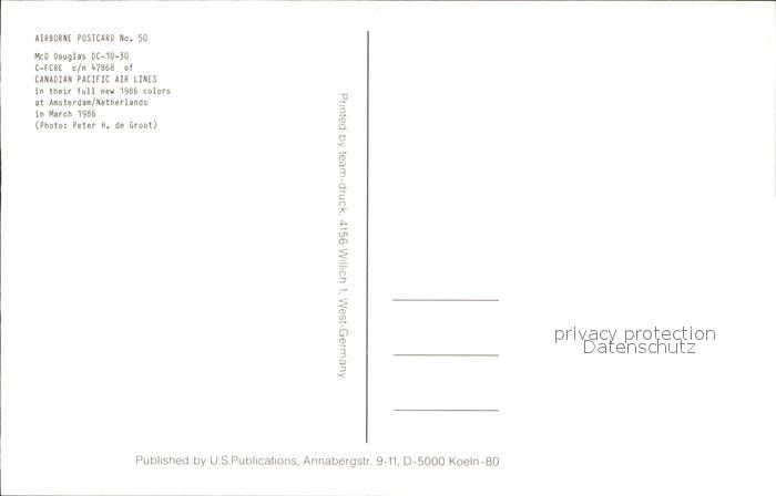 Flugzeuge Zivil Canadian Pacific Air Lines McD Douglas DC-10-30 C-FCRE c/n 47868 postalisch nicht gelaufen Erhaltung siehe scans