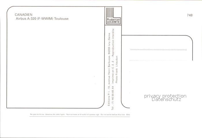 Flugzeuge Zivil Canadien Airbus A-320 F-WWIM postalisch nicht gelaufen Erhaltung siehe scans
