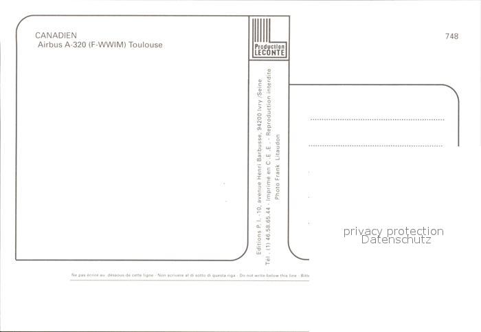 Flugzeuge Zivil Canadien Airbus A-320 Toulouse postalisch nicht gelaufen Erhaltung siehe scans