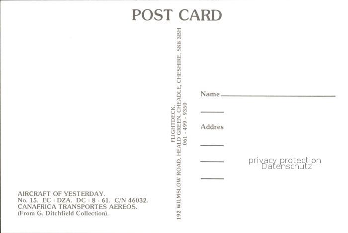 Flugzeuge Zivil Canafrica Transportes Aereos EC-DZA DC-8-61 C/N 46032 postalisch nicht gelaufen Erhaltung siehe scans