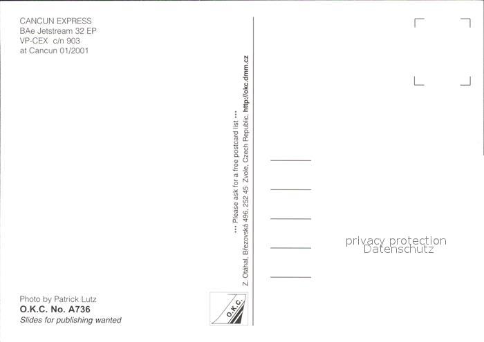 Flugzeuge Zivil Cancun Express BAe Jetstream 32 EP N842CB VP-CEX c/n 903 postalisch nicht gelaufen Erhaltung siehe scans
