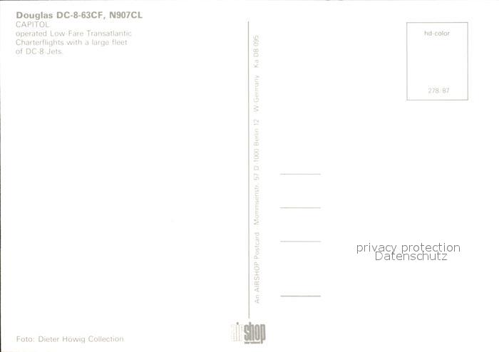 Flugzeuge zivil Capitol Douglas DC-8-63CF N907CL postalisch nicht gelaufen Erhaltung siehe scans