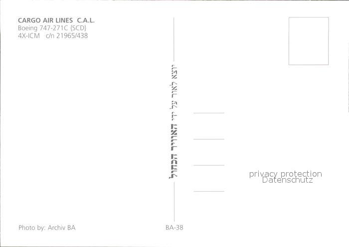 Flugzeuge Zivil Cargo Air Lines C.A.L Boeing 747-271C SCD 4X-ICM c/n 21965/438 postalisch nicht gelaufen Erhaltung siehe scans