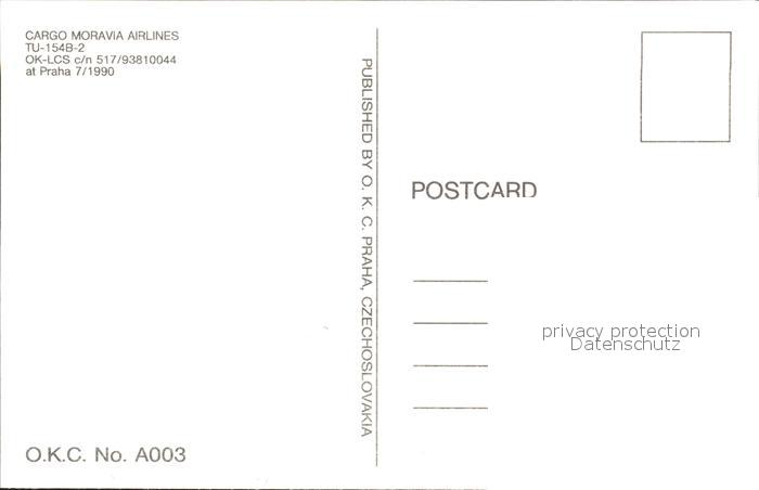 Flugzeuge Zivil Cargo Moravia Airlines TU-154B-2 OK-LCS postalisch nicht gelaufen Erhaltung siehe scans