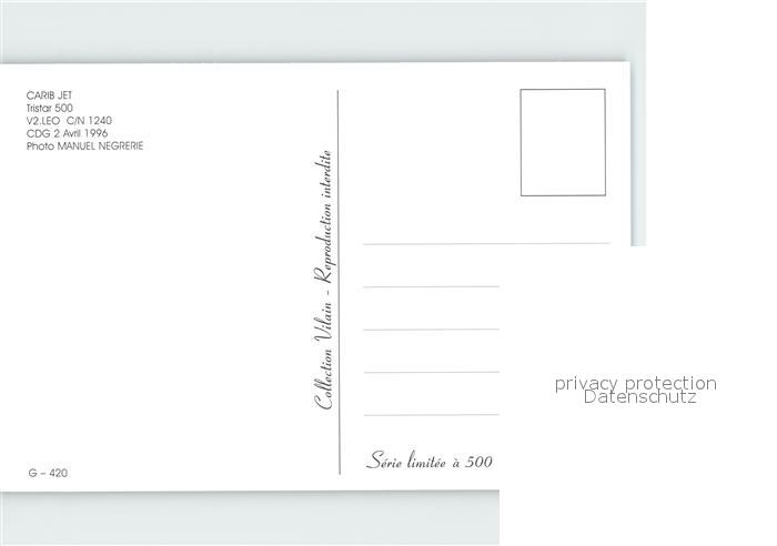Flugzeuge Zivil Carib Jet Tristar 500 V2-LEO C/N 1240 postalisch nicht gelaufen Erhaltung siehe scans