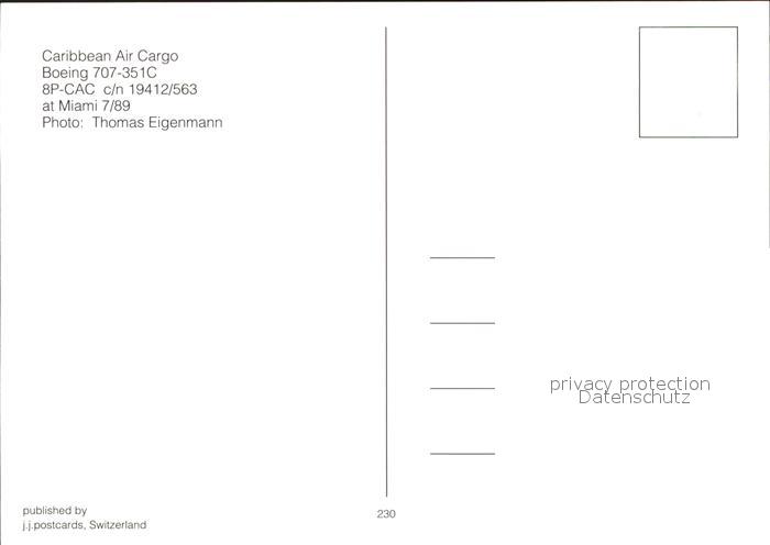 Flugzeuge Zivil Caribbean Air Cargo Boeing 707-351C 8P-CAC c/n 19412/563 postalisch nicht gelaufen Erhaltung siehe scans