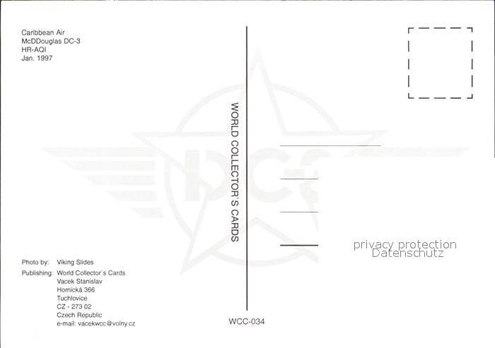 Flugzeuge Zivil Caribbean Air McDDouglas DC-3 HR-AQI postalisch nicht gelaufen Erhaltung siehe scans