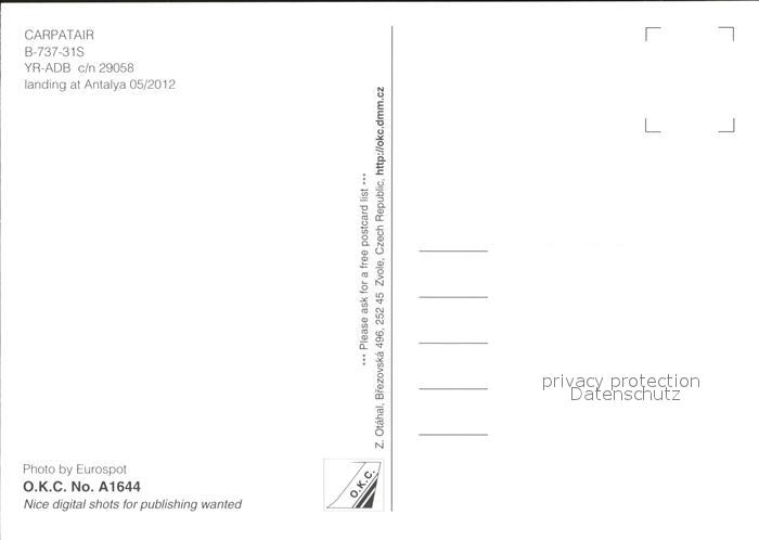 72921032 Flugzeuge Zivil Carpatair B-737-31S YR-ADB c/n 29058 KatCode 22120000001300