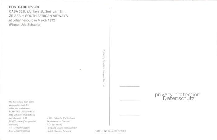 Flugzeuge Zivil CASA 352L Junkers JU/3m c/n 164 ZS-AFA South African Airways postalisch nicht gelaufen Erhaltung siehe scans
