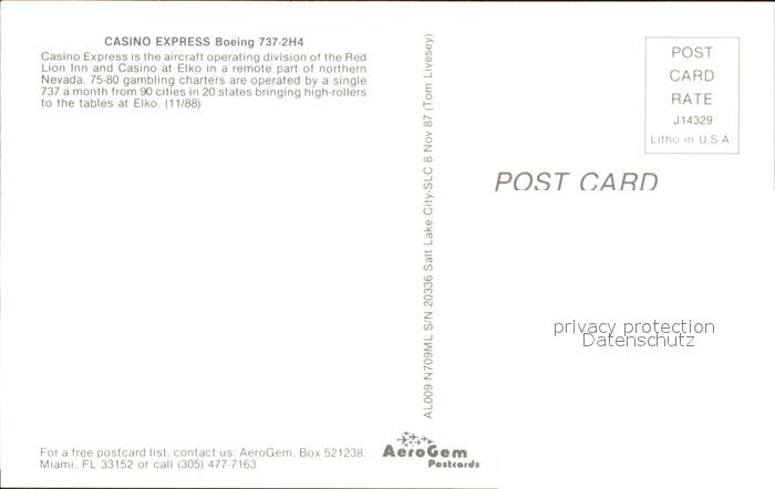 Flugzeuge Zivil Casino Express Boeing 737-2H4 N709ML S/N 20336 postalisch nicht gelaufen Erhaltung siehe scans