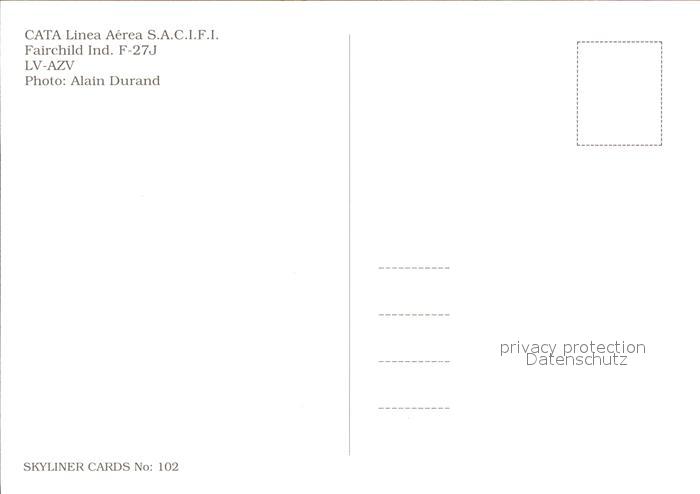 Flugzeuge Zivil Cata Linea Aerea SACIFI Fairchild Ind. F-27J LZ-AZV postalisch nicht gelaufen Erhaltung siehe scans