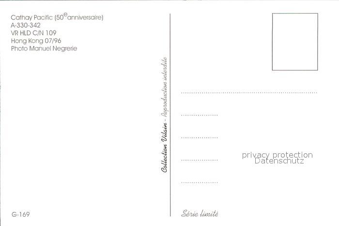 Flugzeuge Zivil Cathay Pacific A330-342 VR-HLD c/n 109 postalisch nicht gelaufen Erhaltung siehe scans