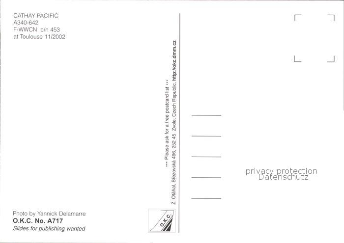 Flugzeuge Zivil Cathay Pacific A340-642 F-WWCN c/n 453 postalisch nicht gelaufen Erhaltung siehe scans