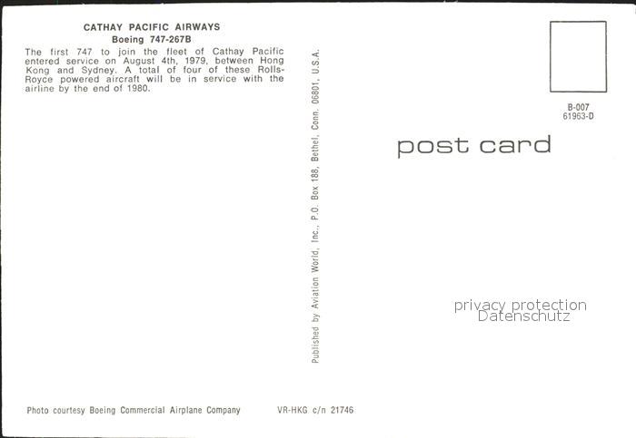 Flugzeuge Zivil Cathay Pacific Airways Boeing 747-267B postalisch nicht gelaufen Erhaltung siehe scans