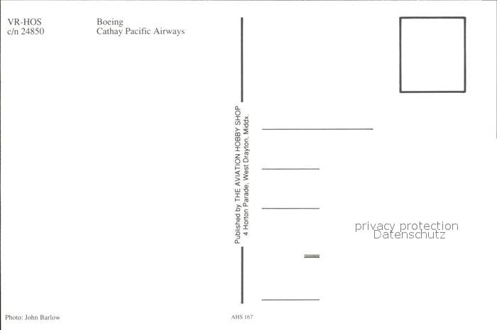 Flugzeuge Zivil Cathay Pacific Airways Boeing VR-HOS c/n 24850 postalisch nicht gelaufen Erhaltung siehe scans