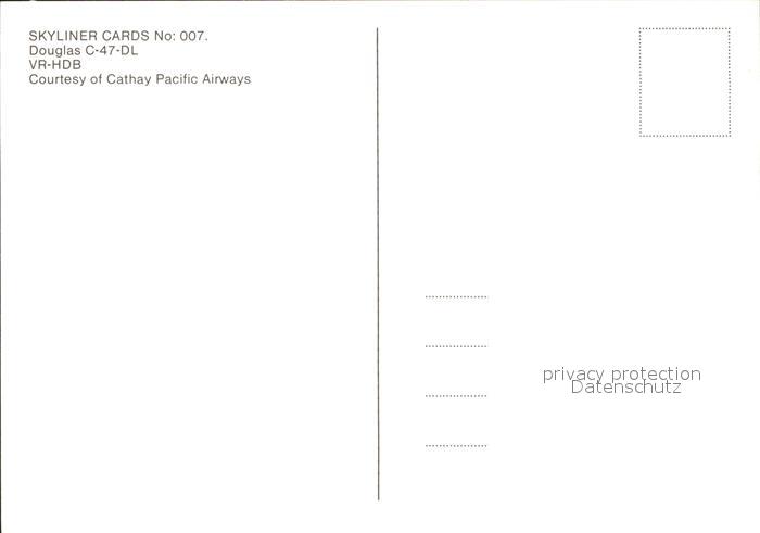 Flugzeuge Zivil Cathay Pacific Airways Douglas C-47-DL VR-HDB postalisch nicht gelaufen Erhaltung siehe scans
