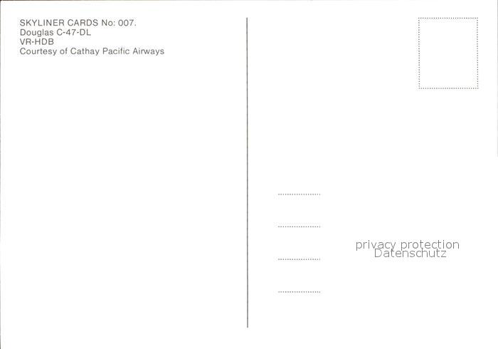 Flugzeuge Zivil Cathay Pacific Airways Douglas C-47-DL VR-HDB postalisch nicht gelaufen Erhaltung siehe scans