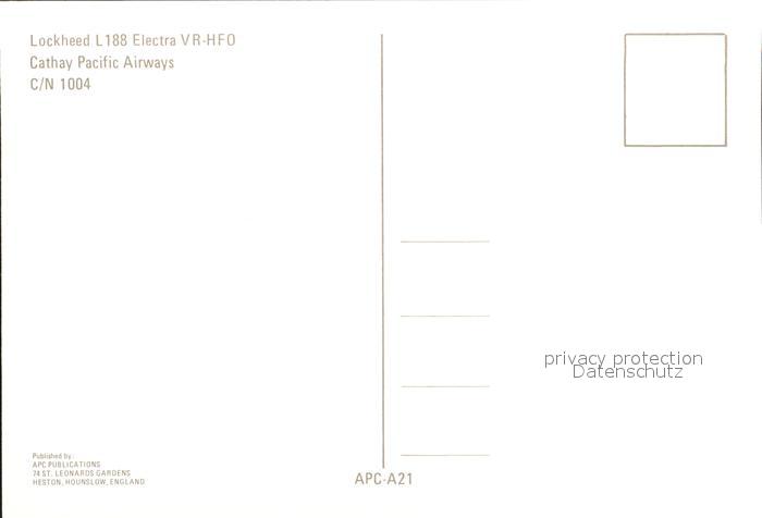 Flugzeuge Zivil Cathay Pacific Airways Lockheed L188 Electra VR-HFO c/n 1004 postalisch nicht gelaufen Erhaltung siehe scans