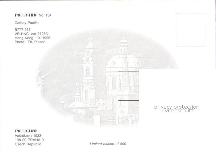 Flugzeuge Zivil Cathay Pacific B777-267 VR-HNC c/n 27263 postalisch nicht gelaufen Erhaltung siehe scans