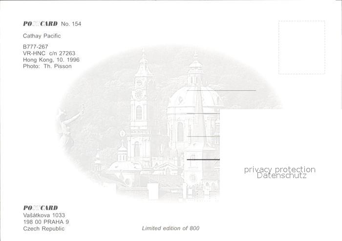 Flugzeuge Zivil Cathay Pacific B777-267 VR-HNC c/n 27263 postalisch nicht gelaufen Erhaltung siehe scans