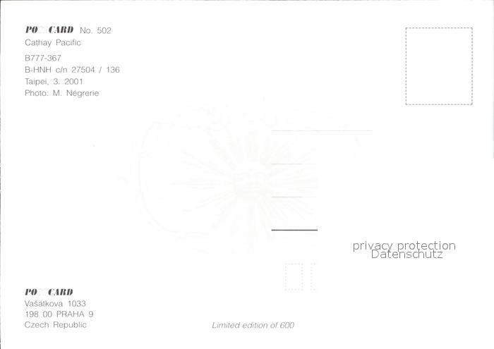 Flugzeuge Zivil Cathay Pacific B777-367 B-HNH c/n 27504/136 postalisch nicht gelaufen Erhaltung siehe scans