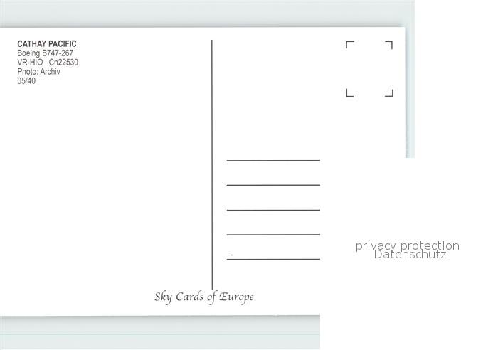 Flugzeuge Zivil Cathay Pacific Boeing 747-267 VR-HIO Cn 22530 postalisch nicht gelaufen Erhaltung siehe scans