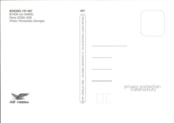 Flugzeuge Zivil Cathay Pacific Boeing 747-467 B-HOX cn 24955 postalisch nicht gelaufen Erhaltung siehe scans