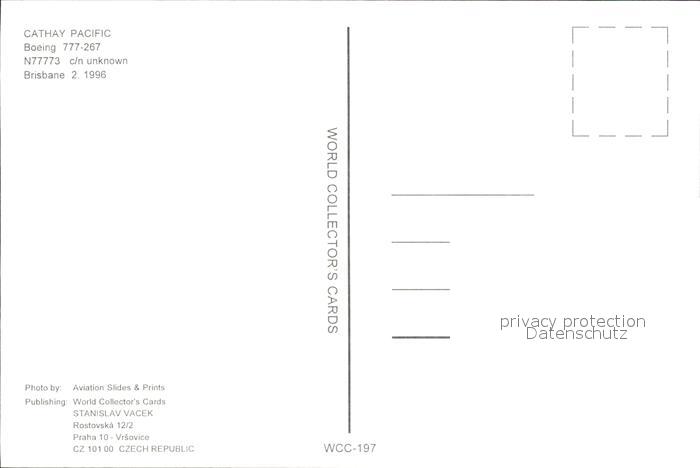 Flugzeuge Zivil Cathay Pacific Boeing 777-267 N77773 c/n unknown postalisch nicht gelaufen