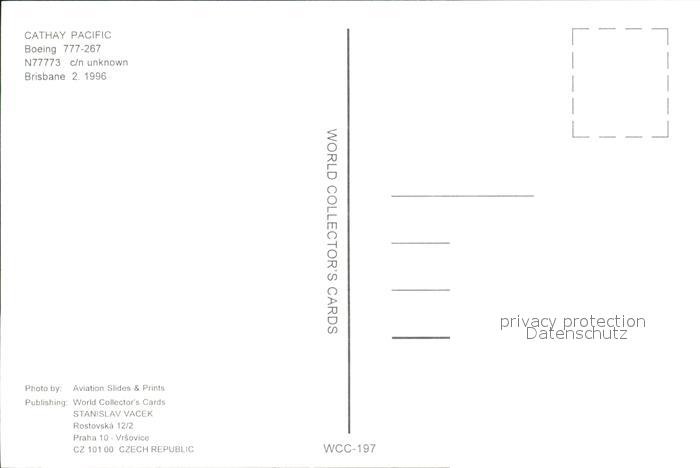 Flugzeuge Zivil Cathay Pacific Boeing 777-267 N77773 postalisch nicht gelaufen Erhaltung siehe scans