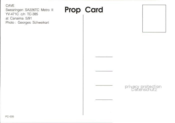 Flugzeuge Zivil Cave Swearingen SA226TC Metro II YV-471C c/n TC-385 postalisch nicht gelaufen Erhaltung siehe scans