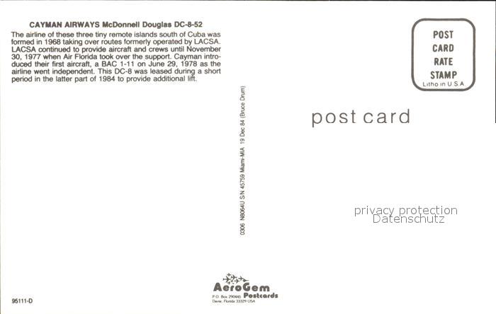 Flugzeuge Zivil Cayman Airways McDonnell Douglas DC-8-52 postalisch nicht gelaufen Erhaltung siehe scans