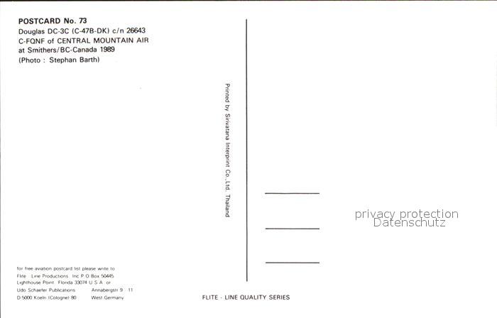 Flugzeuge Zivil Central Mountain Air Douglas DC-3C C-47B-DK c/n 26643 C-FQNF postalisch nicht gelaufen Erhaltung siehe scans