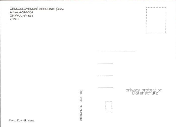 Flugzeuge Zivil Ceskoslovenske Aerolinie CSA Airbus A-310-304 OK-WAA c/n 564 postalisch nicht gelaufen Erhaltung siehe scans