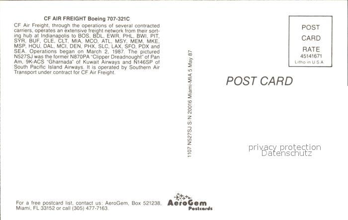 Flugzeuge Zivil CF Air Freight Boeing 707-321C postalisch nicht gelaufen Erhaltung siehe scans