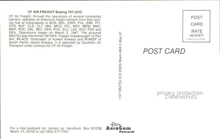 Flugzeuge Zivil CF Air Freight Boeing 707-321C postalisch nicht gelaufen Erhaltung siehe scans