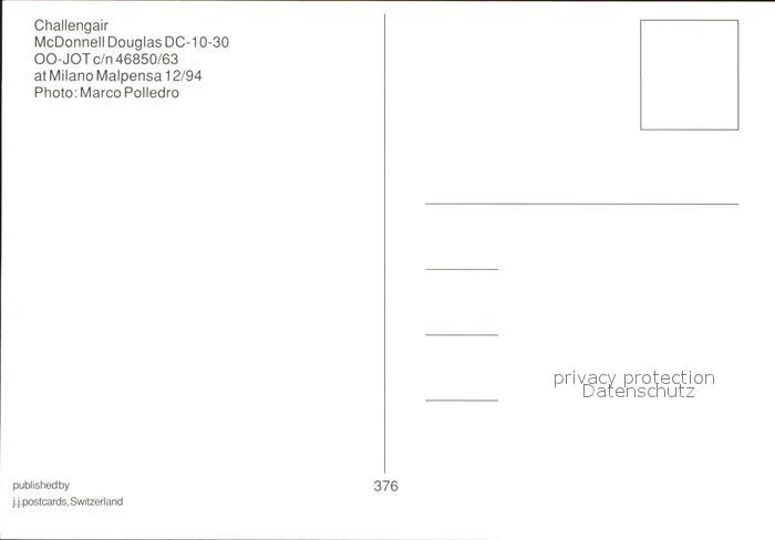 Flugzeuge Zivil Challengair McDonnell Douglas DC-10-30 OO-JOT c/n 46850/63 postalisch nicht gelaufen Erhaltung siehe scans