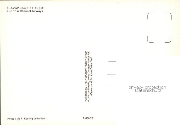 Flugzeuge Zivil Channel Airways AC 1-11 408EF G-AVGP c/n 114 postalisch nicht gelaufen Erhaltung siehe scans
