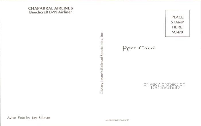 Flugzeuge Zivil Chaparral Airlines Beechcraft B-99 Airliner N324CA postalisch nicht gelaufen Erhaltung siehe scans