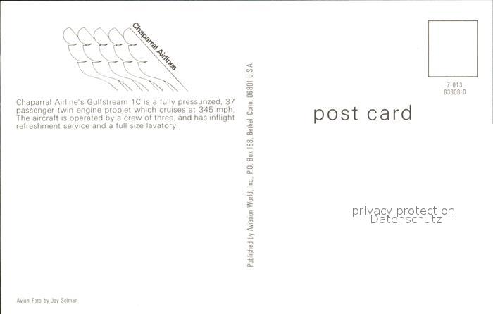 Flugzeuge Zivil Chaparral Airlines Gulfstream 1C postalisch nicht gelaufen Erhaltung siehe scans