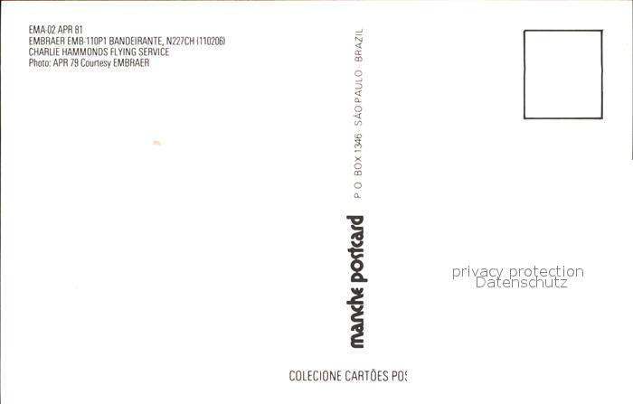 Flugzeuge Zivil Charlie Hammonds Flying Service Embarer EMB-110P1 Bandeirante N227CH 110206 postalisch nicht gelaufen Erhaltung siehe scans