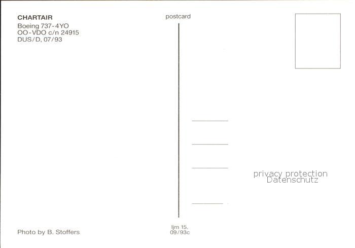 Flugzeuge Zivil Chartair Boeing 737-4YO OO-VDO c/n 24915 postalisch nicht gelaufen Erhaltung siehe scans