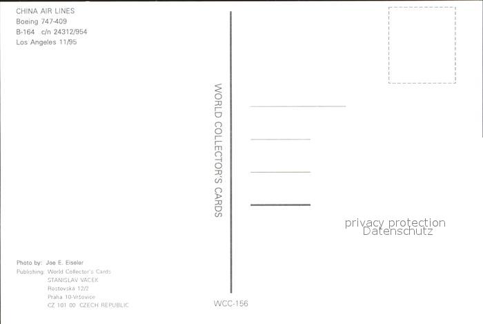 Flugzeuge Zivil China Air Lines Boeing 747-409 B-164 c/n 24312/954 postalisch nicht gelaufen Erhaltung siehe scans