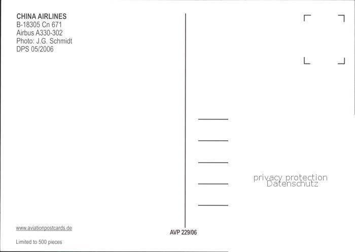 Flugzeuge Zivil China Airlines Airbus 330-302 B-18305 Cn 671 postalisch nicht gelaufen Erhaltung siehe scans