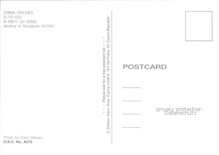 Flugzeuge Zivil China Airlines B-737-43Q B-18677 c/n 28494 postalisch nicht gelaufen Erhaltung siehe scans