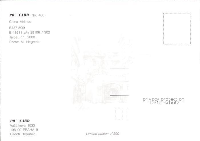 Flugzeuge Zivil China Airlines B737-8O9 B-18611 c/n 29106/302 postalisch nicht gelaufen Erhaltung siehe scans