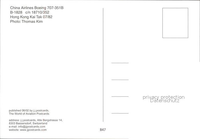 Flugzeuge Zivil China Airlines Boeing 707-351B B-1828 c/n 18710/352 postalisch nicht gelaufen Erhaltung siehe scans