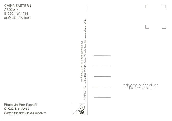 Flugzeuge Zivil China Eastern A320-214 B-2201 c/n 914 postalisch nicht gelaufen Erhaltung siehe scans [PaolaD17]