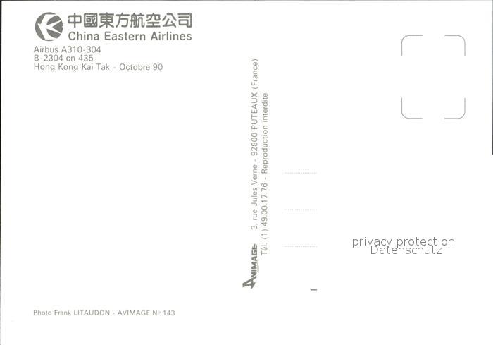 Flugzeuge Zivil China Eastern Airlines Airbus 310-304 B-2304 cn 435 postalisch nicht gelaufen Erhaltung siehe scans