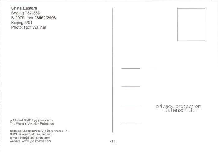 Flugzeuge Zivil China Eastern Boeing 737-36N B-2979 c/n 28562/2908 postalisch nicht gelaufen Erhaltung siehe scans