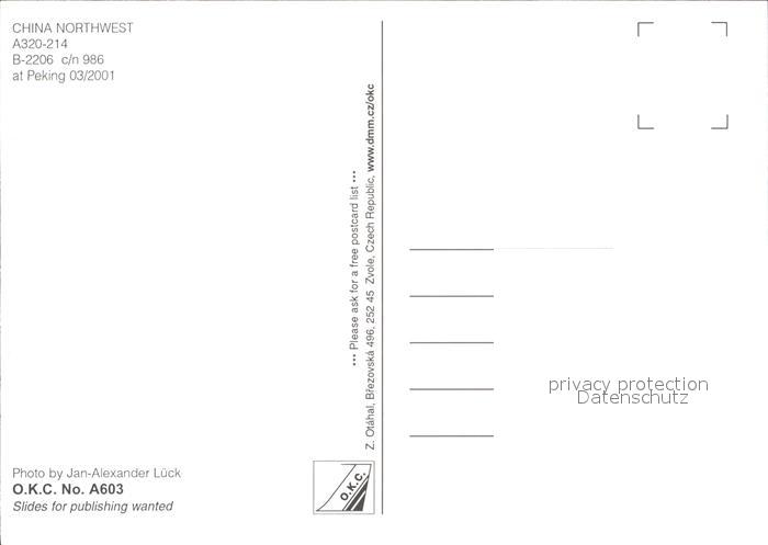 Flugzeuge Zivil China Northwest A320-214 B-2206 c/n 986 postalisch nicht gelaufen Erhaltung siehe scans